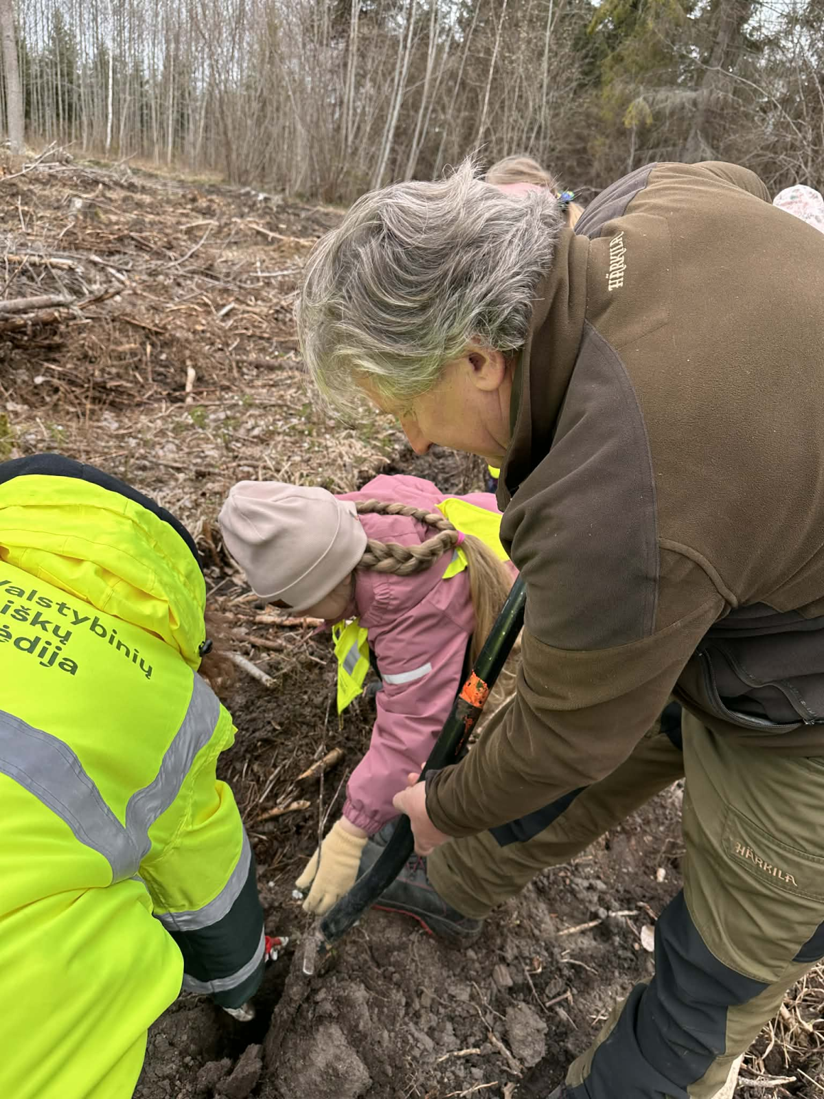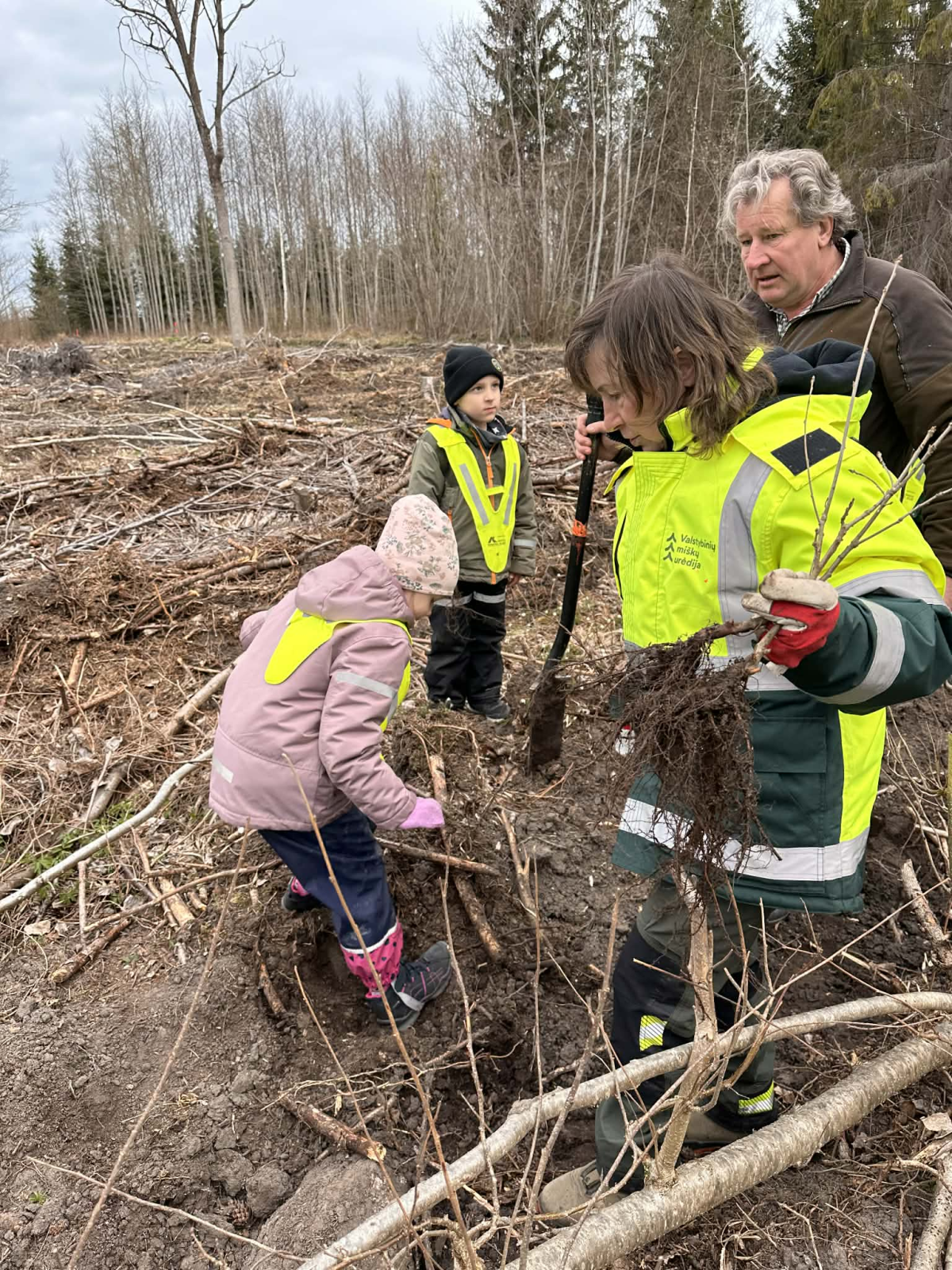 Su sodinimo subtilybėmis supažindino Aurėjos mamytė – Valstybinės miškų tarnybos Miškų departamento Šiaurės regiono vyr. specialistė Sima Rakauskienė. Šiltai pasitiko ir apie medžių augimą bei miškininko profesiją įdomiai papasakojo VĮ VMU Kuršėnų regioninio padalinio Šiaulių girininkijos girininkas Valdas Nausutis bei specialistė Rimantė.