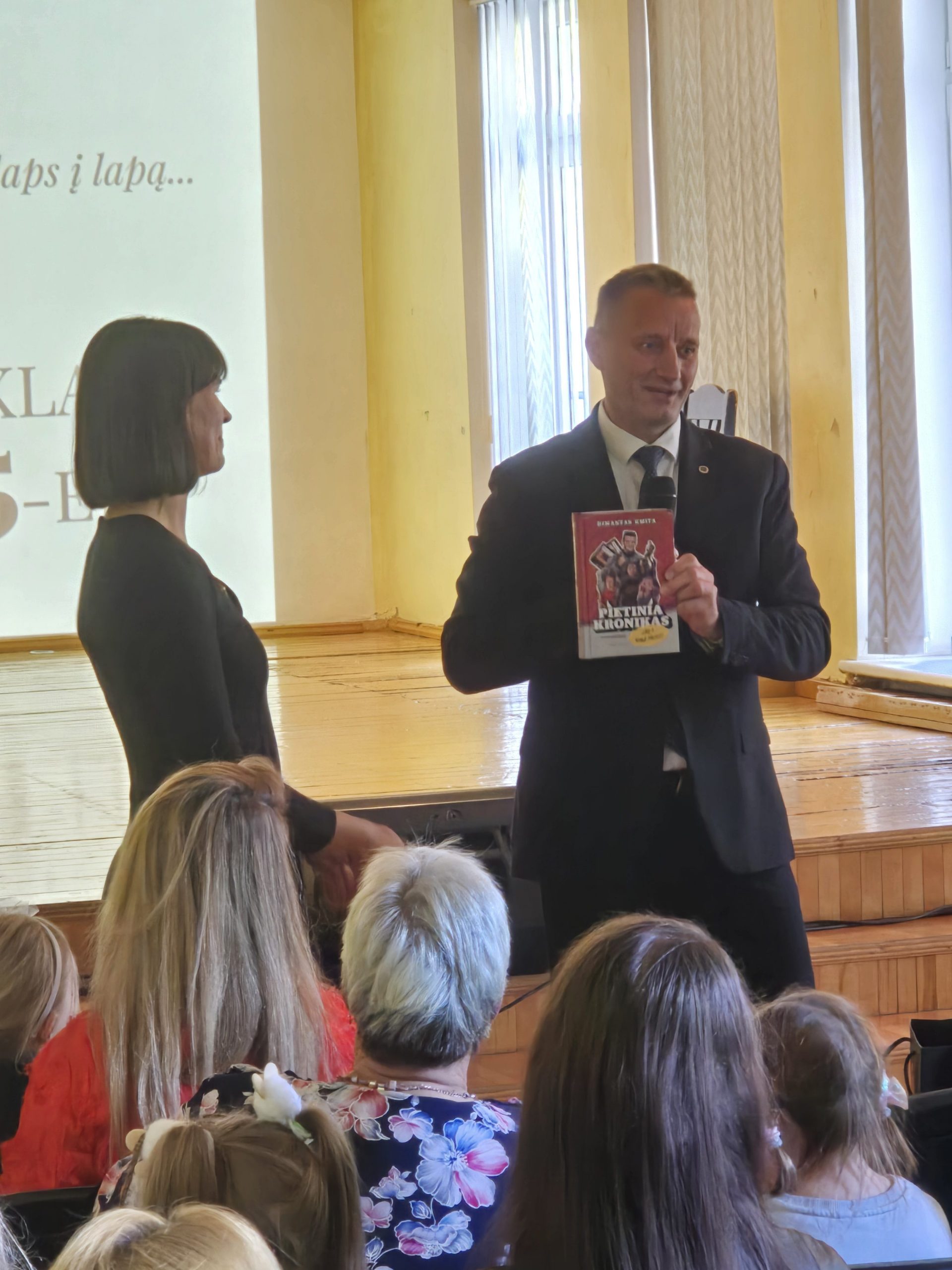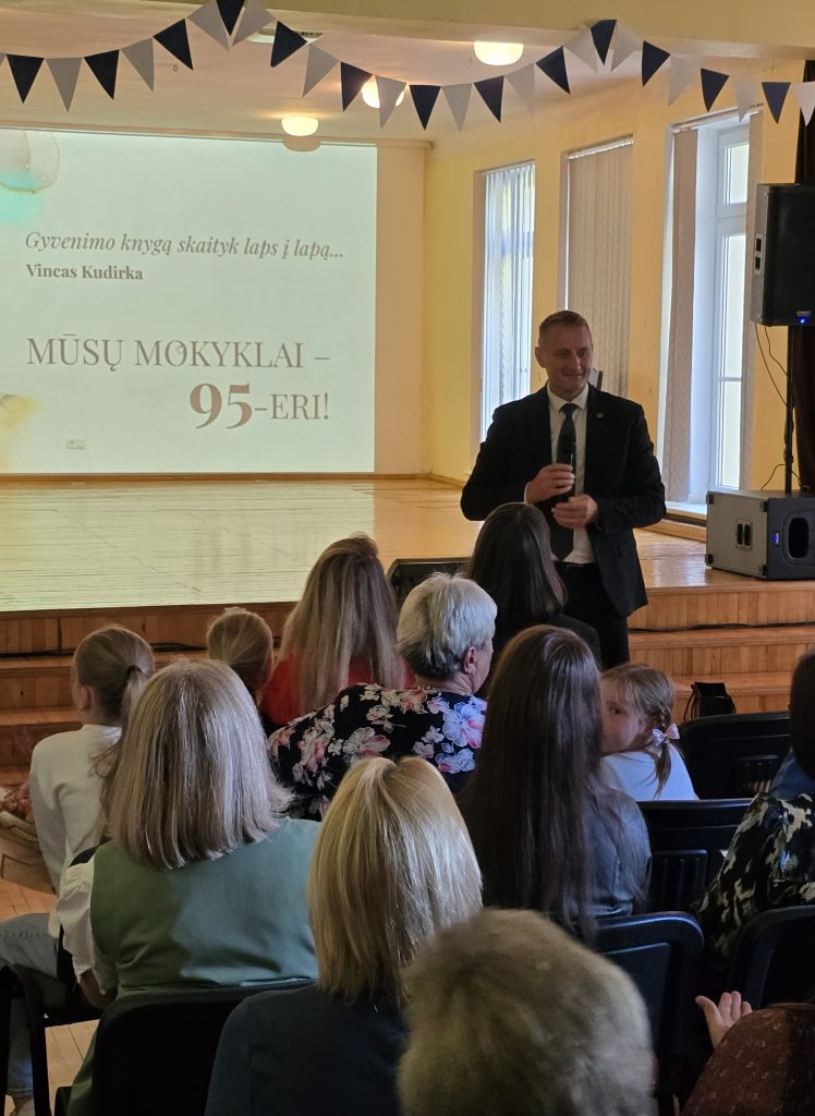 Miesto meras, sveikindamas mokyklos bendruomenę, linkėjo puoselėti humanizmą, švelnumą ir neprarasti akių spindėjimo.