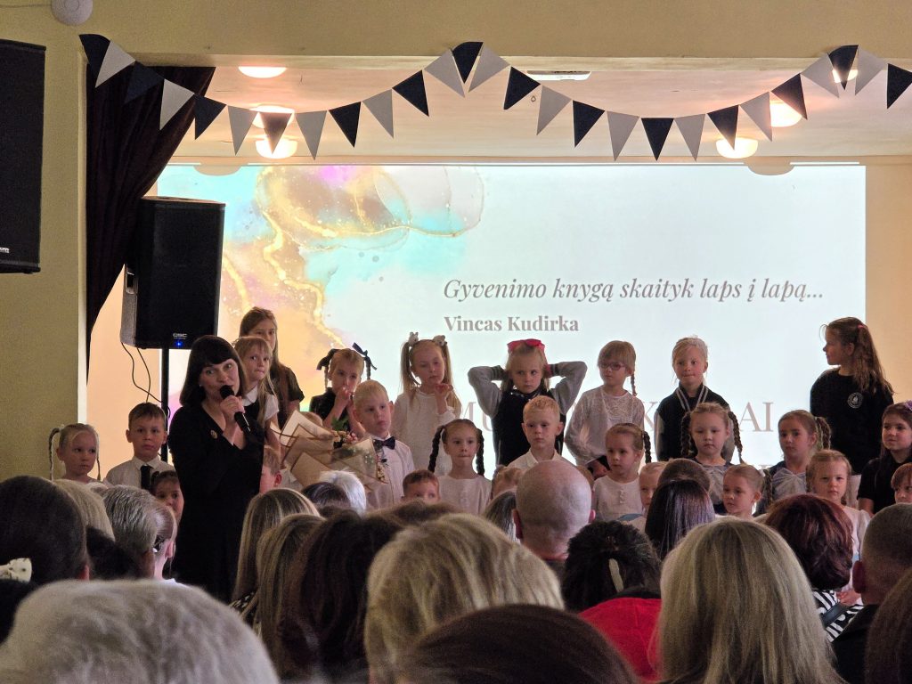 Mokyklos direktorė Vida Šarauskienė apžvelgė mokyklos istoriją, džiaugėsi sąžiningu mokyklos bendruomenės darbu, skatino ir toliau puoselėti bendrystę, augti bei auginti šalia esantįjį.
